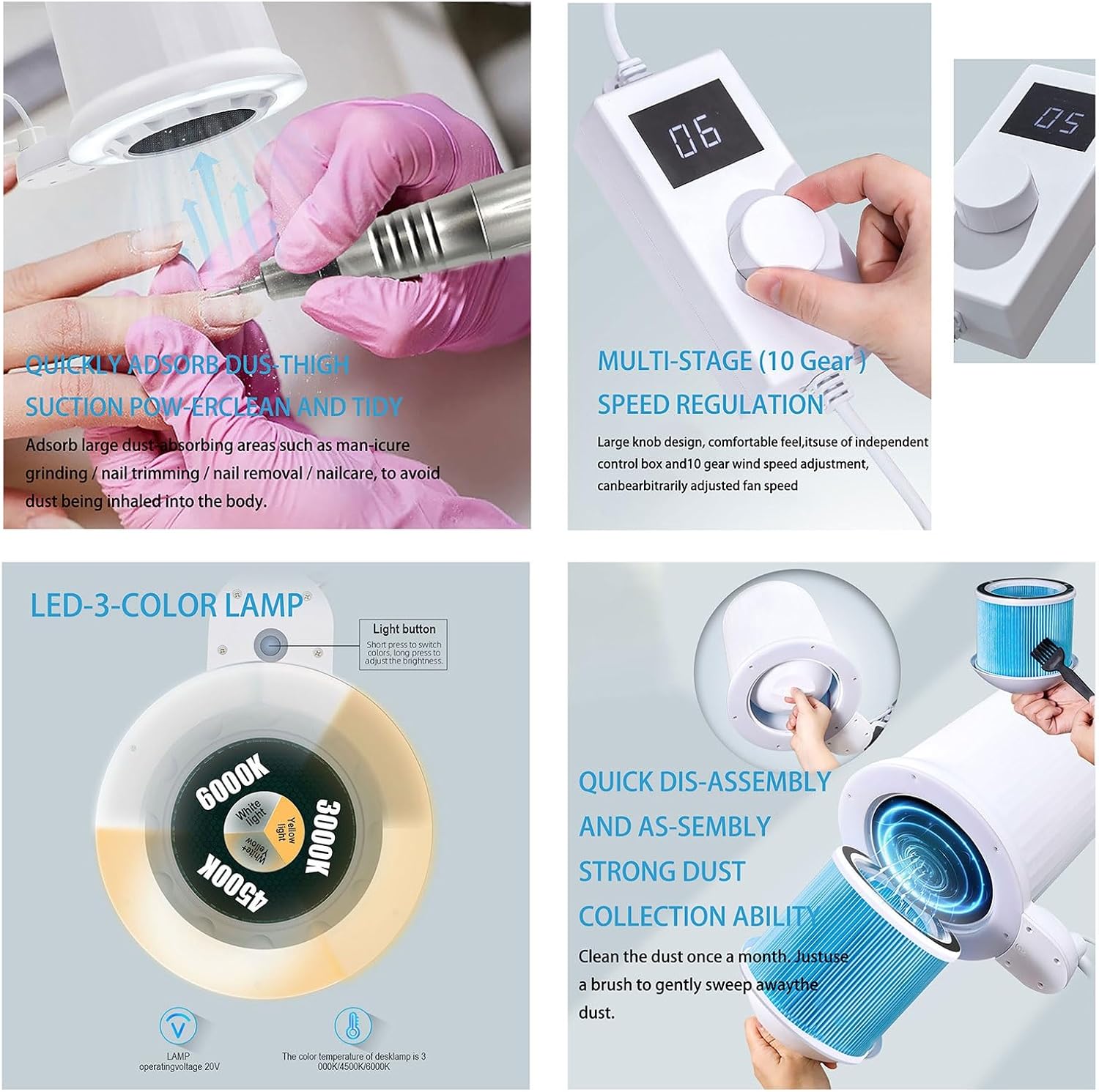 A lámpához ajándék állvány is jár, így nem csak asztalhoz rögzíthető, asztal mellé is állítható, illetve pedikűrösök is könnyedén használhatják.